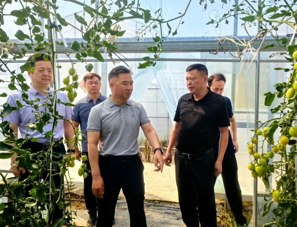 在佴池村“稻鳖共生”生态种养基地,调研组实地考察了“一水两用、一田双收”的循环农业模式,细致询问了种养结合模式的具体实施要点、产销模式及经济效益。潘永圣指出:“这种模式实现了经济效益与生态效益的双赢,下一步要充分发挥学院优势,组建跨学科技术服务专班,从品种选育、病虫害绿色防控到品牌营销提供全周期指导。”随后,调研组走进现代化大棚温室,现场察看了樱桃番茄的种植生长情况。