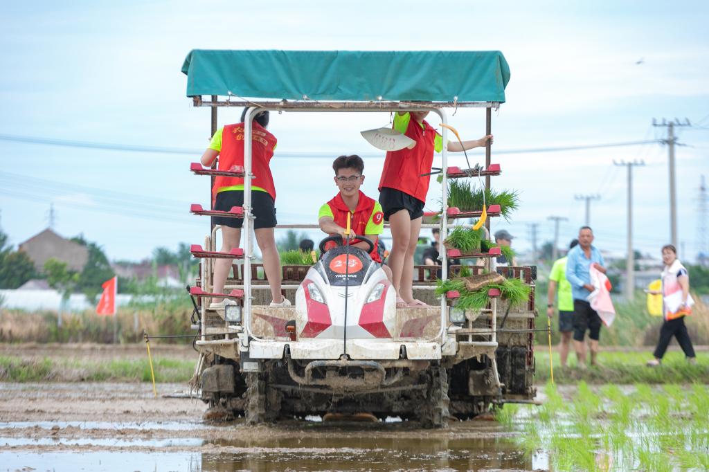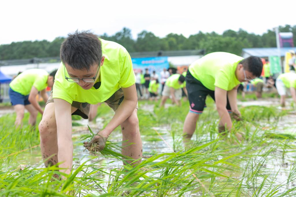 躬行:技能练兵·插秧比武。最富特色的插秧技能大赛将活动推向高潮。手插秧组与机插秧组10支参赛队同台竞技,上演现实版“速度与激情”。手插秧选手指尖翻飞,秧苗如琴键般在稻田里整齐列队;机插秧队伍操控现代化农机,在田间绘就笔直的绿色诗行。经过激烈角逐,翠苗冲锋队凭借“零漏插、行距准”的精湛技艺摘得桂冠,青秧飞侠队、插秧逐光队分获二三等奖。活动设置“技能先锋奖”“最佳协作奖”“创新实践奖”,表彰在传统技艺传承、团队协作、技术创新等方面表现突出的团队。