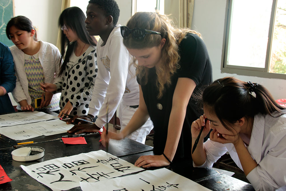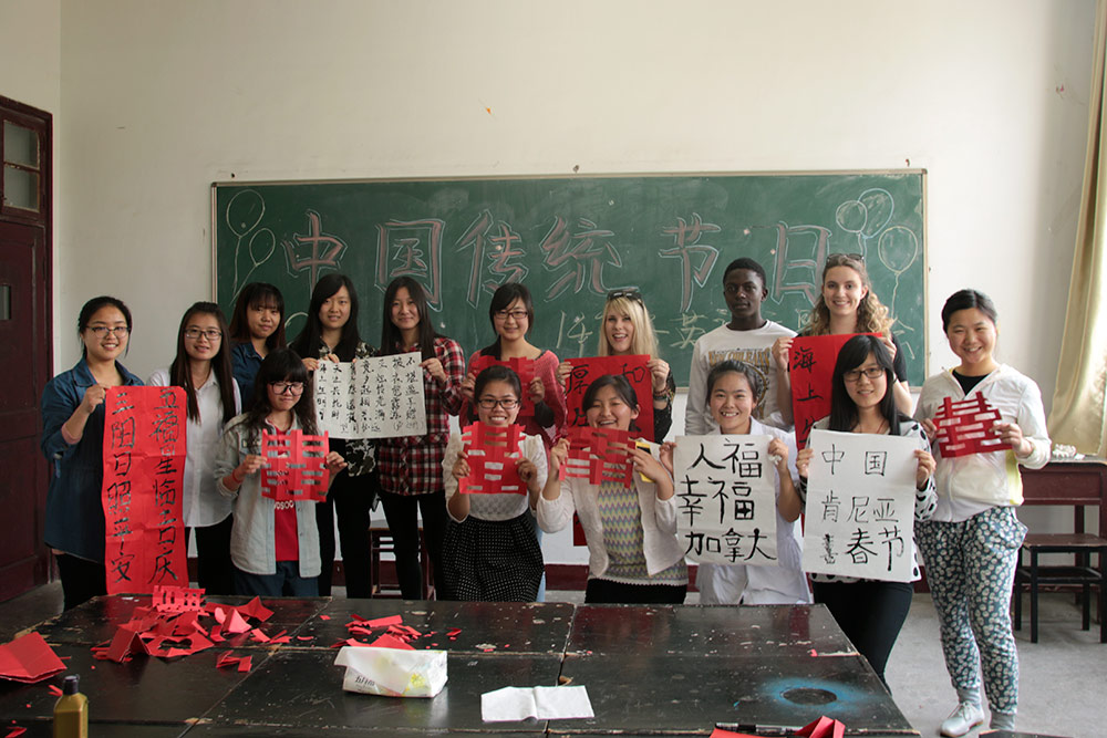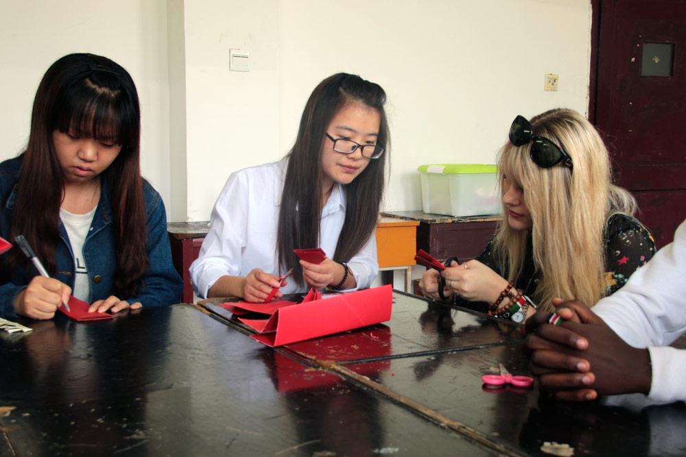 近日,人文艺术系在各班级开展了以学习和弘扬中华传统文化为主题的团活动。 活动紧紧围绕培育和践行社会主义核心价值观,弘扬中华优秀传统文化。各班级通过主题班会、知识竞赛、演讲、诗朗诵等多种形式的活动来体现中华优秀传统文化。14商务英语班结合专业特色,开展了一堂生动的学习中华传统文化主题班会课,她们用英语向米兰官网外籍志愿者和留学生讲述了中国的传统文化,并向她们展示了书法、剪纸和包饺子等中华传统文化。