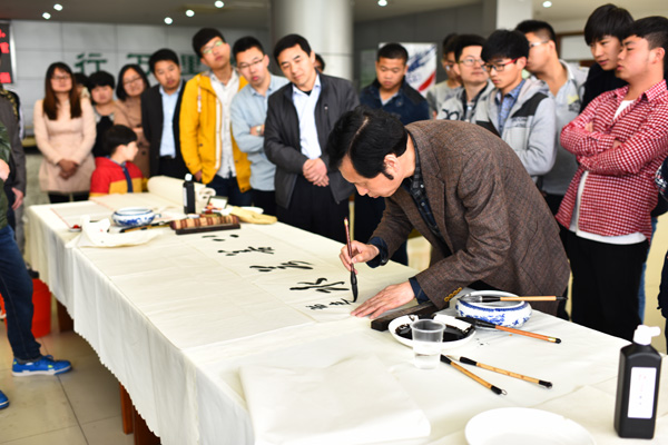 丹青溢彩,翰墨飘香,由学院图书馆主办的书画“SHOW”——书画名家、爱好者现场笔会暨书画作品展活动于18日上午9时在图书馆二楼大厅正式拉开帷幕。