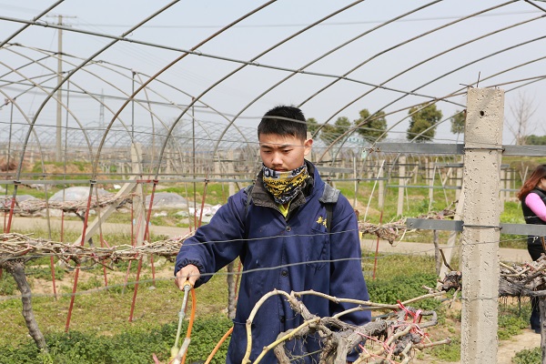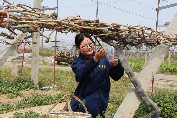 3月25日,农学园艺系相关负责人前往“新禾果园”创业实践基地看望创业学子,察看创业项目运行及进展情况。 现在正是葡萄萌芽阶段,“新禾果园”创业学子在葡萄园里忙碌着,农学园艺系党委副书记来到园子里与同学们交流,鼓励他们要多思考、多实践、多沟通、多分享,不断完善和提高自己技能。 “新禾园”创业项目运营一年多以来,已经初显成效,成为学院品牌创业项目。农学园艺系将进一步探索完善“新禾园”创业教育模式,提供有利的政策保障,创造条件让更多的学子参与到创业队伍中来。