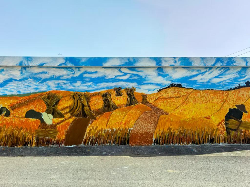 实践活动伊始,师生们深入村落进行走访调研,精准捕捉当地的特色风貌与发展需求。他们将大华村引以为傲的优质水稻产业作为艺术创作的核心元素,精心构思并确定了15幅墙绘方案。实践过程中,团队成员分工明确、协作默契。他们以质朴的农舍墙面为天然画布,挥洒汗水与创意,细致勾勒饱满稻穗,生动描绘累累硕果,再辅以青山绿水、蓝天白云的生态意境,巧妙展现出“稻香丰年、生态和谐”的乡村美好愿景。这些崭新的墙绘作品成为村落一道道亮丽的风景线,引得村民纷纷驻足观赏、连连赞叹。