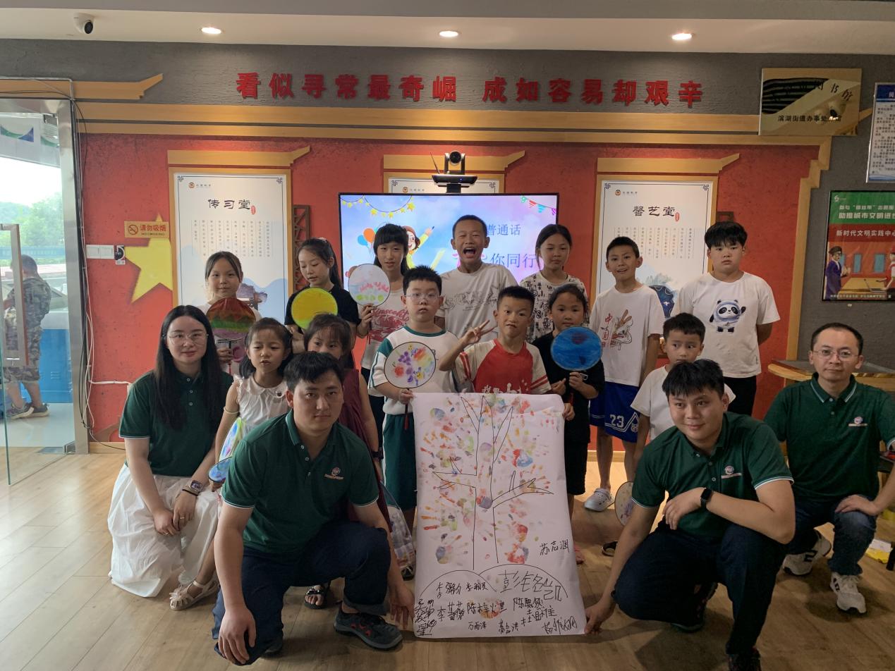 而手印树环节成了全场高潮。孩子们排着队蘸颜料,把自己的手印印在象征茁壮成长的大树干上,“我要签在最高的树枝上,以后说好普通话,去看更远的地方!”