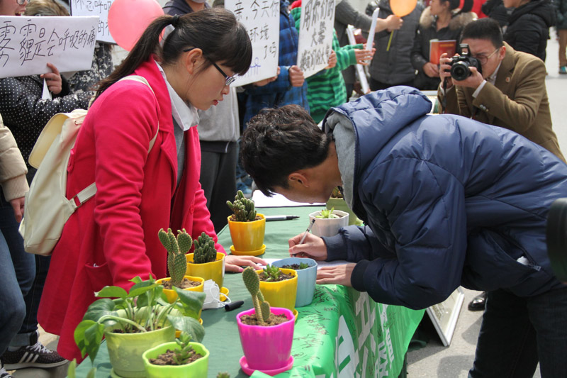 3.12日的植树节,米兰官网茅山校区、农学园艺系及畜牧兽医系均开展了公益活动宣扬环保理念。 茅山校区分团委青年志愿者协会组织了“多一片绿叶 少一点雾霾”植树活动。在学习了植树方法后,同学们自发分为男女两大组,在茅山校区的校园空地上植树造林。男同学凭借自身的体力优势,握紧铁铲往泥土中深扎,女同学则拿起水桶脸盘前去接水,为树苗浇溉。平常连锄头都没有摸过的同学们,此刻却有板有眼地当起了“园艺工程师”。大家分工合作,挖坑、扶树苗、抬水、浇水,一眨眼的功夫,一棵棵充满生机和希望的树苗便“亭亭玉立”在校园的沃土上。 农学园艺系分团委联合7栋、10栋大学生社区服务站在食堂门口举行“穹顶之下,安能呼吸,以旧换绿,共治雾霾”环保公益活动。多位同学自发聚集在一起,手举写有低碳环保语句的自制标牌,用身体语言诠释“倡导低碳,拒绝雾霾”的主题,路过的同学纷纷停下脚步,在印有“穹顶之下,安能呼吸,以旧换绿,共治雾霾”的条幅上写下自己的名字,一旁的工作人员则向同学们宣传绿色、环保、健康的重要性,并且给每位签名的同学派送口罩或写有宣传标语的气球,以此来提醒大家在雾霾天气做好防御措施,关注环境保护环境。多位同学自发拿来二手用品以换取绿色盆栽,同学们的热情参与给绿色环保公益活动增添了活力。 畜牧兽医系则把活动场所扩展到了校园外。畜牧兽医系分团委青年志愿者分会来到了崇明幼儿园,在这里开展了以“防治雾霾我们在行动”为主题的宣传活动。在崇明幼儿园门口,志愿者的热情宣传便引了过往的家长与孩子们。在现场高涨氛围的感染下,很多市民主动在印有“防治雾霾 我们在行动”的横幅上签字,表明自己对环保公益的支持。