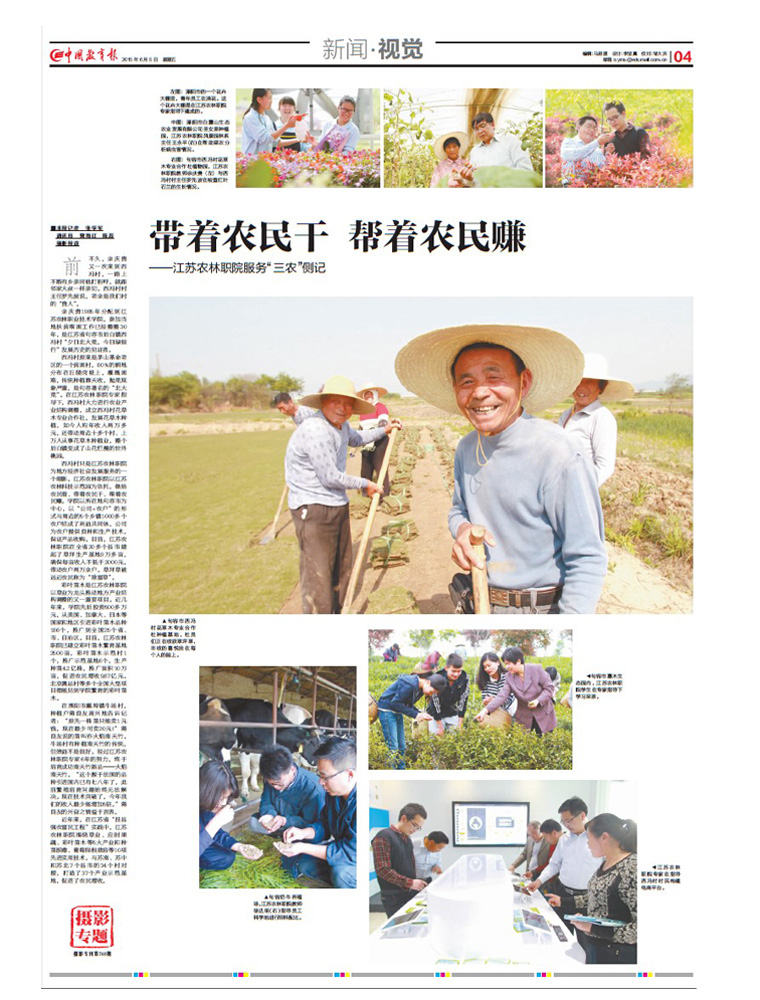 西冯村只是江苏农林职院为地方经济社会发展服务的一个缩影。江苏农林职院以江苏农林科技示范园为依托,做给农民看、带着农民干、帮着农民赚。学院以所在地句容市为中心,以“公司+农户”的形式与周边的5个乡镇1000多个农户结成了利益共同体,公司为农户提供良种和生产技术,保证产品收购。目前,江苏农林职院在全省20多个县市建起了草坪生产基地9万多亩,确保每亩收入不低于2000元,带动农户两万余户。草坪草被远近农民称为“致富草”。